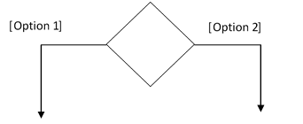 3. Decisions: Similar to flowcharts, a logic where a decision is to be made is depicted by a diamond, with options written on either sides of the arrows emerging from the diamond. Within the box brackets.