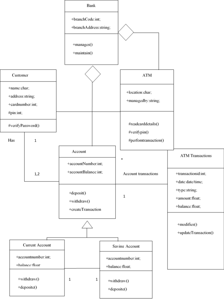 i. Simple association: This is a structural link between two peer classes. There is an association between Class1 and Class2.