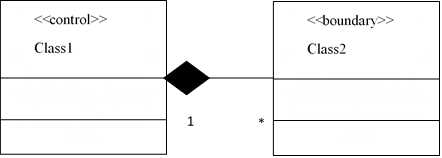 This relationship is displayed as a solid line with a filled diamond at the association end, which is connected to the class that represents the whole, or composite.