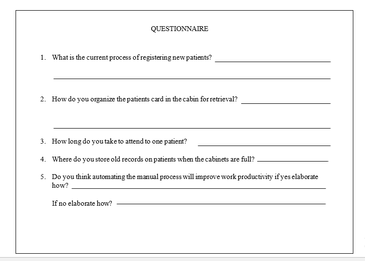 As one of the data collection tool the researcher when doing a project/proposal they must attach a questionnaire to show how they have gathered information on a given case study.
