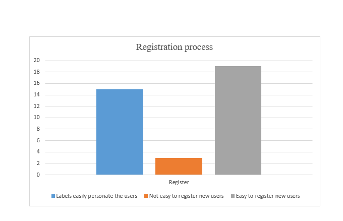 The researcher used a sample size of 20 from which the above analysis was concluded. 15 out of 20 respondents stated that labels that were integrated in registration form easily personate the users 18 out of 20 respondents found out that it was easy to register new users while 3 out of 20 experienced some difficulty during the registration process.