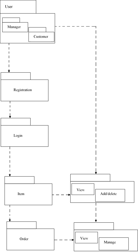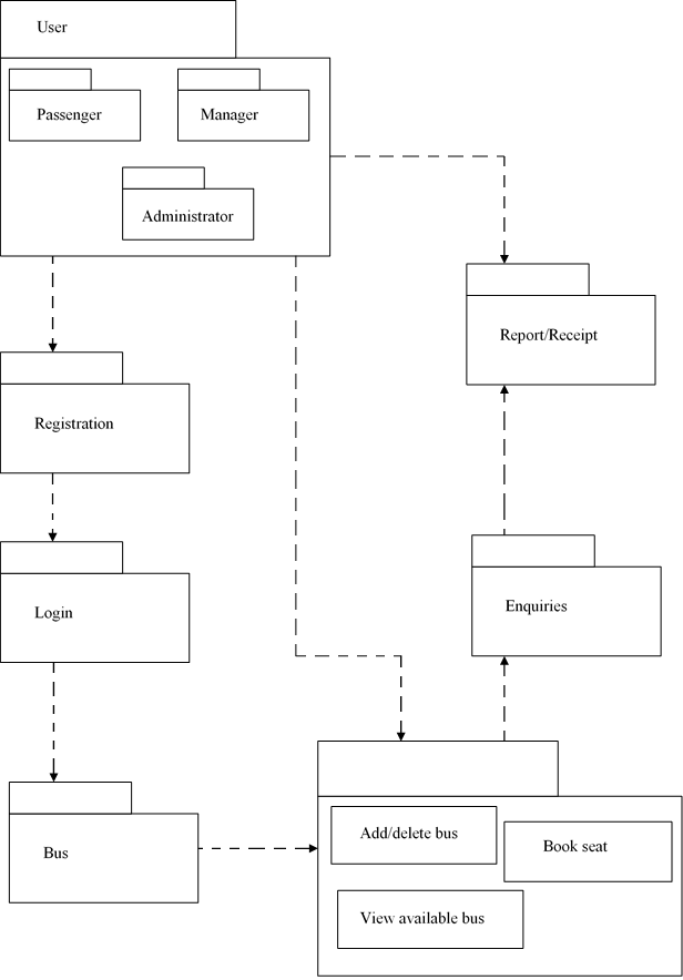 Based on the cases of online bus booking and online order information system the diagrams below demonstrate those cases in a package diagram.