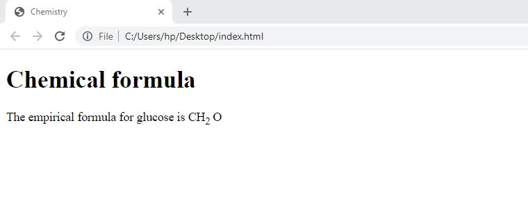 <p> The empirical formula for glucose is CH<sub>2 </sub>O </p>