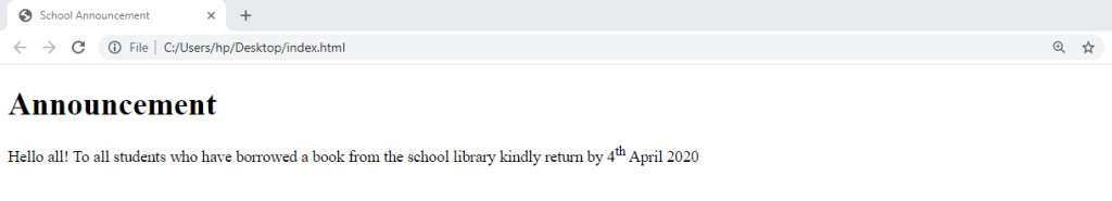 <p> Hello all! To all students who have borrowed a book from the school library kindly return by 4<sup>th </sup> April 2020 </p>