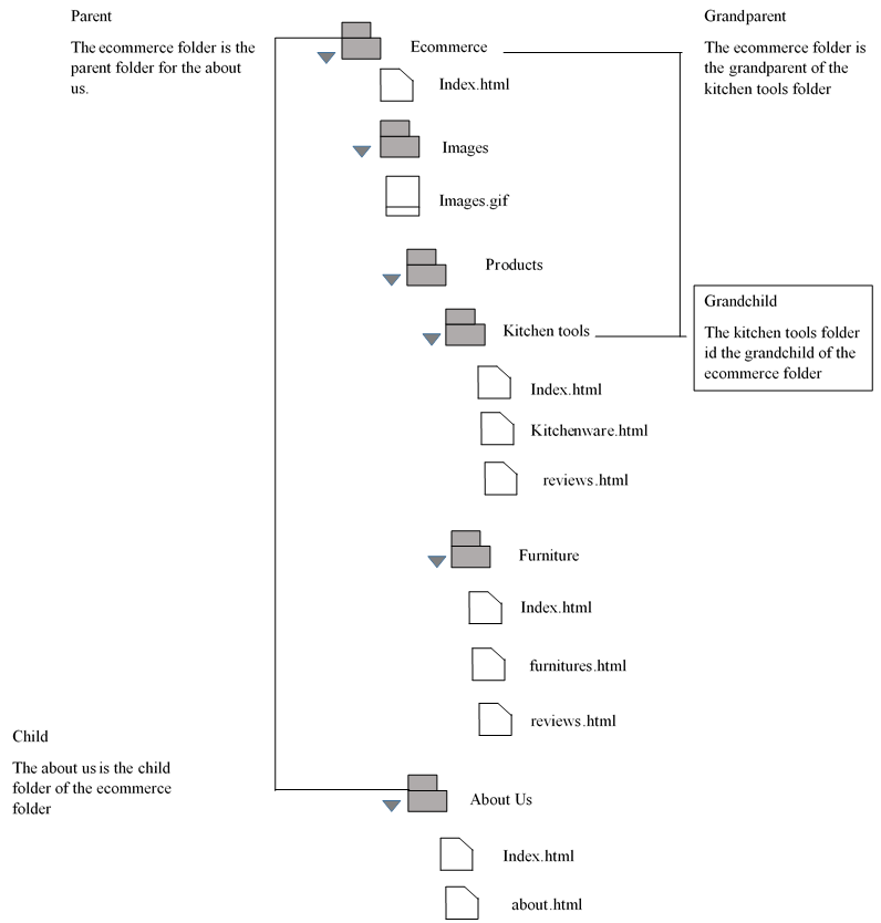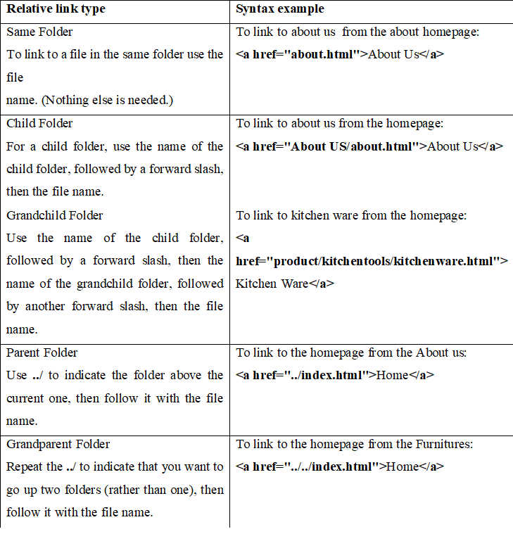 - Using examples explain how you can link the following folders: same folder, parent folder, child folder, grandchild folder and grand parent folder.